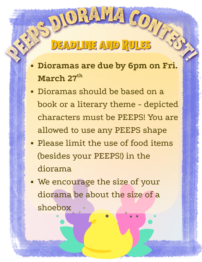 - New Books are put out every Friday! Come in and check out what we’ve added to the collection this week.