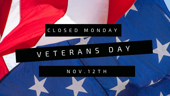 Closed Monday! Posted by Brenda 0 We will be CLOSED Monday November 12th for Veterans Day! See you all back Tuesday! Share this: Click to share on X (Opens in new window) X Click to share on Facebook (Opens in new window) Facebook Like Loading... Related