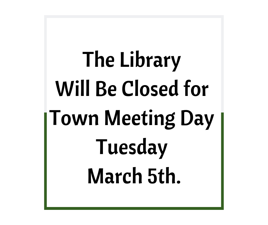 We Will Be Closed on Tuesday March 5th for Town Meeting Day.