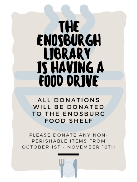 The Library is Having a Food Drive for the Food Shelf!