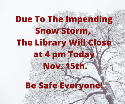 Early Closing of the Library Today! Posted by Brenda 0 Share this: Click to share on X (Opens in new window) X Click to share on Facebook (Opens in new window) Facebook Like Loading... Related