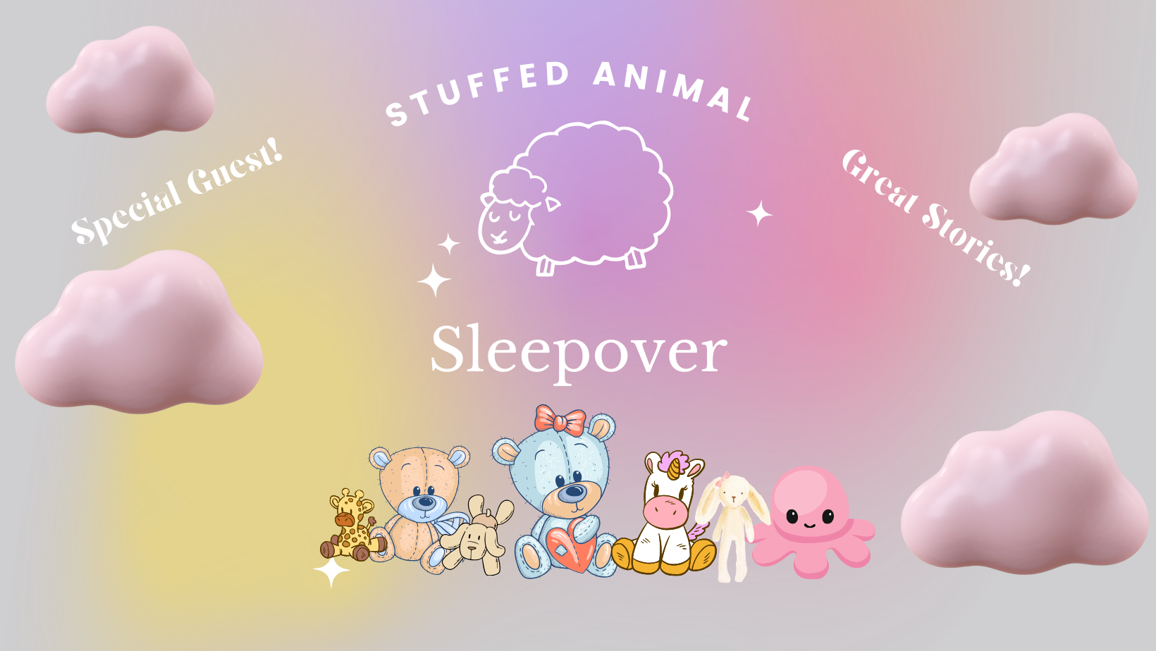 Come on in dressed in your PJ’s with your Stuffed animal. Get cozy while Sara reads stories to put your stuffed animal friends to bed.