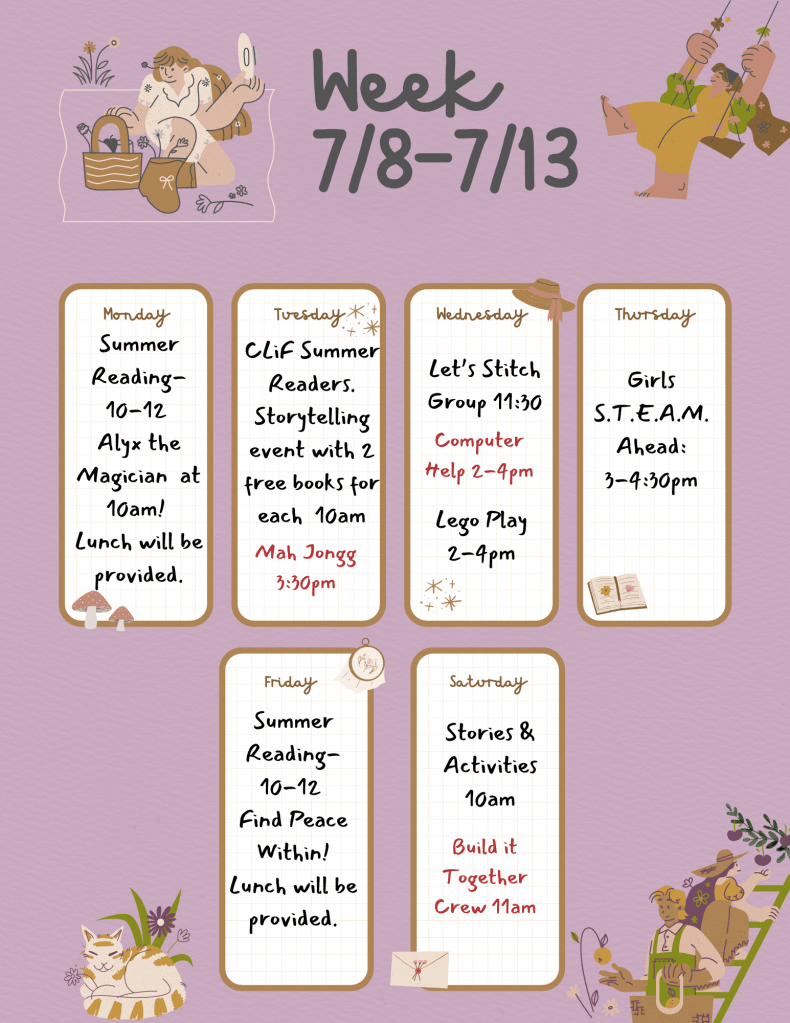 🎩Adventure begins at Your Library: Starting off with, *poof* We will have Alyx the Magician join us! You’re not going to want to miss this fun time with you and your family!